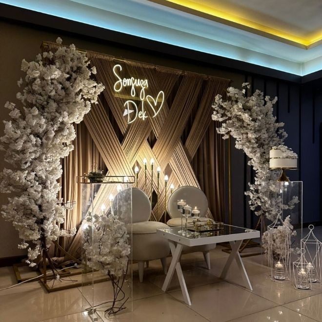 Nişan organizasyonlarında “ne kadar çok süs, o kadar şık” düşüncesi yaygın bir yanılgıdır. Oysa aşırı süsleme alanı daraltır ve göz yoran bir görüntü oluşturur.