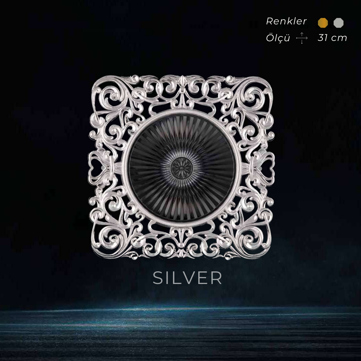 31 cm çapında osmanlı desenli supla olup klasik ve gösterişli masa dekorları için kullanılır.